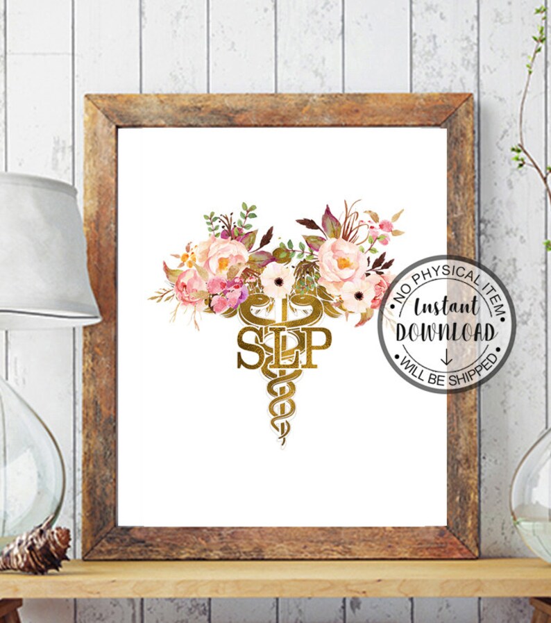 Slp Caduceus Print Slp Office Decor Speech Language Etsy